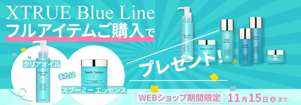 今なら、XTRUE Blue Line フルラインセットをご購入で、「Clear Oil Prem(クリアオイル プレム)」または「Spumy Essence(スプーミー エッセンス)」のどちらかをプレゼント。